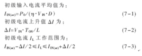 設(shè)PWM控制最大占空比Dmax=42%,如果初級(jí)繞組的電感量設(shè)計(jì)得大,則流過功率開關(guān)管和輸出濾波電容的電流峰值小,但由于電流上升斜率小,電路抗干擾能力差且功率開關(guān)管開通電流大;電感量小時(shí),電流脈動(dòng)大,沖擊電流大。因此設(shè)計(jì)電感電流工作在連續(xù)工作狀態(tài),輕負(fù)載時(shí)取額定功率的一半,由(2)式可知: