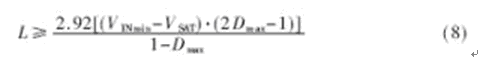 當(dāng)占空比大于50%時(shí),所有電流模式控制器不可避免地要受到振蕩諧波的影響而導(dǎo)致不穩(wěn)定。為了消除振蕩諧波,在回掃式控制器應(yīng)用電路中,必須把初級(jí)線圈的電感量設(shè)計(jì)為大于最小值。其經(jīng)驗(yàn)計(jì)算公式如下(單位為μH):