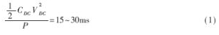 根據(jù)所選擇的電壓等級,直流側(cè)電容電壓等級選定為450V。其容量則一般使用如下經(jīng)驗公式進(jìn)行計算: