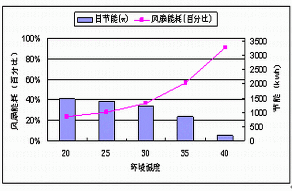 從圖3可看出,隨著環(huán)境溫度的降低,換熱單元的耗能隨至減少。當(dāng)環(huán)境溫度為20度時(shí),換熱單元耗能只是滿負(fù)荷功耗的25%,日可節(jié)約電能約1.5度。