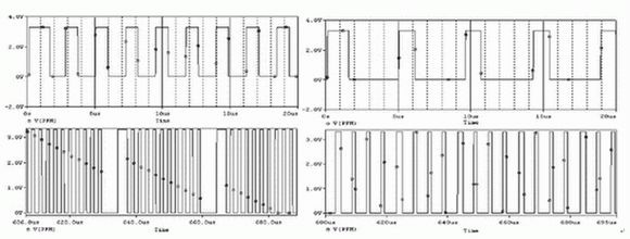 從模擬結(jié)果可以看出,此PFM控制電路的實(shí)現(xiàn)方式在輕負(fù)載下,可以有效降低轉(zhuǎn)換器的損耗,提高運(yùn)行效率。