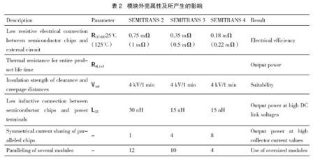 SEMITRANS模塊外殼的主要參數(shù)以及這些參數(shù)對最終產(chǎn)品性能所產(chǎn)生的影響的詳細信息如表2所列。