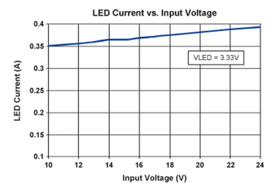 • 為單個3.3V LED供電,提供350mA (典型)電流(其它LED配置結(jié)構,請按照設計步驟進行設計)