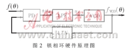 圖1所示的控制環(huán)節(jié)可以很方便地用鎖相環(huán)硬件電路來實(shí)現(xiàn),其原理如圖2所示。圖中,PD為相差比較器,其傳遞函數(shù)為:ud=kp•Δθ;VCO為壓控振蕩器,其傳遞函數(shù)為