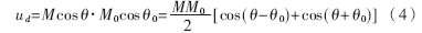 式(4)中第二項(xiàng)是一個(gè)倍頻的交流成分,若θ-θ0是常量,第一項(xiàng)則為直流成分。而且,若θ-θ0接近于-π/2,則cos(θ-θ0)=sin(θ-θ0+π/2)≈θ-θ0+π/2。故對(duì)于ud的直流成分來說,模擬相乘器相當(dāng)于一個(gè)相位的減法器。