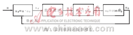 軟件鎖相原理是用計(jì)算機(jī)軟件實(shí)現(xiàn)上述鎖相過程。將圖2的分頻系數(shù)N取1,設(shè)輸入u=Mcosθ,輸出u0=M0cosθ0,其中θ和θ0是隨時(shí)間而變化的量,則