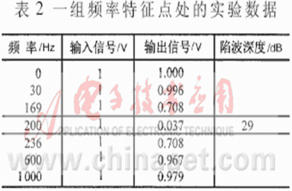 表2給出一組頻率特征點(diǎn)處的實(shí)驗(yàn)測試數(shù)據(jù)。