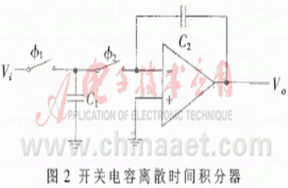 這里直接給出開關(guān)電容離散時(shí)間積分器的結(jié)構(gòu)圖(圖2) 及其離散時(shí)間傳遞函數(shù)[4]: