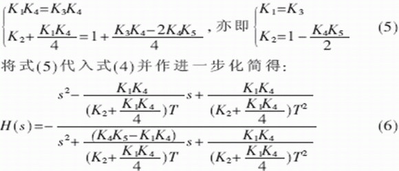 其中i=1,2,3,4,5。通過雙線性變換把式(3)轉(zhuǎn)化為連續(xù)時(shí)間傳遞函數(shù)模型: