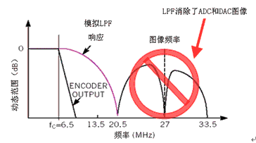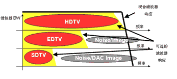 ED 480p/576p信號也可能出現(xiàn)這種情況。此類信號通常采樣頻率為54MHz,視頻帶寬為 12MHz。因此,第二Nyquist區(qū)圖像會在42MHz時出現(xiàn)。如果無源濾波器為35MHz或更高,那么圖像的衰減也會很小,同樣也會導(dǎo)致畫質(zhì)非常差。