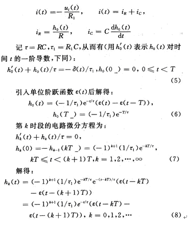 由于電子開關(guān)周期性切換,RC電路對(duì)外電路的影響表現(xiàn)為:下一時(shí)段的輸出電壓初值是上一時(shí)段末時(shí)刻輸出電壓值乘(-1),即: