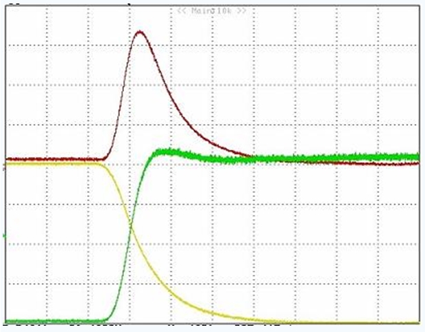 下圖是MOS管導通時的波形??梢钥闯?,導通瞬間電壓和電流的乘積很大,造成的損失也就很大。降低開關(guān)時間,可以減小每次導通時的損失;降低開關(guān)頻率,可以減小單位時間內(nèi)的開關(guān)次數(shù)。這兩種辦法都可以減小開關(guān)損失。