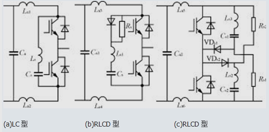 圖7是三種放電阻止型吸收電路。放電阻止型緩沖電路中吸收電容Cs的放電電壓為電源電壓,每次關斷前,Cs僅將上次關斷電壓的過沖部分能量回饋到電源,減小了吸收電路的功耗。因電容電壓在IGBT關斷時從電源電壓開始上升,它的過電壓吸收能力不如RCD型充放電型。