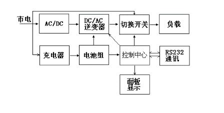 圖1 為在線式UPS 的主電路,在線式UPS 電源具有獨立的旁路開關(guān)、AC/DC 整流器、充電器、DC/AC 逆變器等系統(tǒng),工作原理是:市電正常時AC/DC 整流器將交流電整流成直流電,同時對蓄電池進行充電,再經(jīng)DC/AC 逆變器將直流電逆變?yōu)闃藴收也ń涣麟?,市電異常時,電池對逆變器供電,在UPS 發(fā)生故障時將輸出轉(zhuǎn)為旁路供電。在線式UPS輸出的電壓和頻率最為穩(wěn)定,能為用戶提供真正高質(zhì)量的正弦波電源。