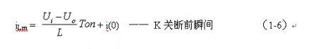 當(dāng)控制開(kāi)關(guān)K由接通期間Ton突然轉(zhuǎn)換到關(guān)斷期間Toff的瞬間,流過(guò)電感L的電流iL達(dá)到最大值: