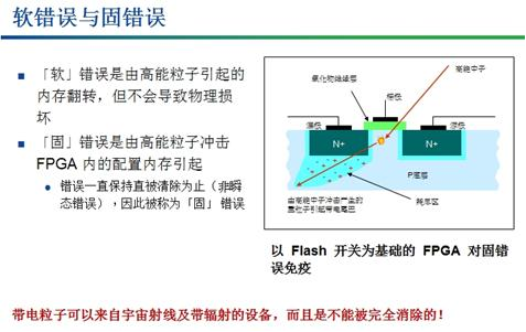 他指出對于Flash工藝器件來說,它對固錯誤有免疫性,因?yàn)镕lash晶體管不會隨意翻轉(zhuǎn),雖然有瞬態(tài)翻轉(zhuǎn),但瞬態(tài)過了以后會恢復(fù)生產(chǎn)。