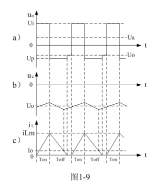 由(1-27)式可以看出,反轉(zhuǎn)式串聯(lián)開關(guān)電源輸出電壓與輸入電壓與開關(guān)接通的時間成正比,與開關(guān)關(guān)斷的時間成反比。