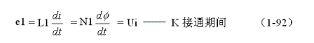 圖1-17中,當(dāng)輸入電壓Ui加于開(kāi)關(guān)電源變壓器初級(jí)線圈的兩端,且變壓器的所有次級(jí)線圈均開(kāi)路時(shí),流過(guò)變壓器的電流只有勵(lì)磁電流,變壓器鐵心中的磁通量全部都是由勵(lì)磁電流產(chǎn)生的。當(dāng)控制開(kāi)關(guān)接通以后,勵(lì)磁電流就會(huì)隨時(shí)間增加而增加,變壓器鐵心中的磁通量也隨時(shí)間增加而增加。根據(jù)電磁感應(yīng)定理: