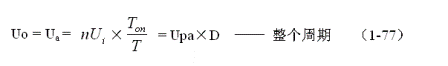 我們從(1-76)和(1-77)兩式可知,改變控制開(kāi)關(guān)K的占空比D,只能改變輸出電壓(圖1-16-b中正半周)的平均值Ua ,而輸出電壓的幅值Up不變。因此,正激式變壓器開(kāi)關(guān)電源用于穩(wěn)壓電源,只能采用電壓平均值輸出方式。