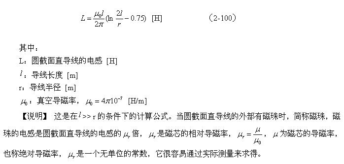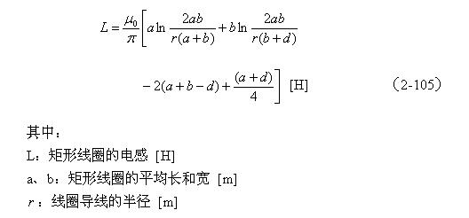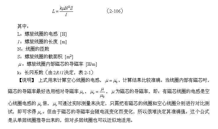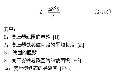 【說明】上式是用來計算變壓器線圈電感的計算公式。由于變壓器鐵芯的磁回路基本是封閉的,變壓器鐵芯的平均導磁率相對來說比較大。鐵芯的導磁率一般在產(chǎn)品技術(shù)手冊中都會給出,但由于大多數(shù)開關(guān)電源變壓器的鐵芯都留有氣隙,留有氣隙的磁回路會出現(xiàn)磁場強度以及磁感應(yīng)強度分布不均勻,因此,(2-108)式中的導磁率只能使用平均導磁率,技術(shù)手冊中的數(shù)據(jù)不能直接使用。