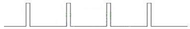 而當(dāng)輸出電壓降至50V5A時(shí),控制脈沖的寬度降到最寬脈沖的10%,形如: