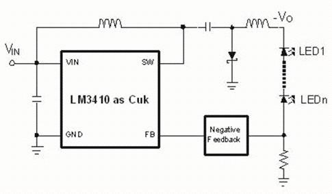 很少被用作電壓調(diào)節(jié)的Cuk轉(zhuǎn)換器作為LED驅(qū)動(dòng)而嶄露頭角。輸入和輸出電流都是連續(xù)的。輸出電壓的極性就像高端buck-boost一樣被反置,但是輸出電容像buck轉(zhuǎn)換器一樣被消除。除Buck-boost和boost以外,Cuk是擁有這種能力的唯一的實(shí)用型非隔離調(diào)節(jié)器。