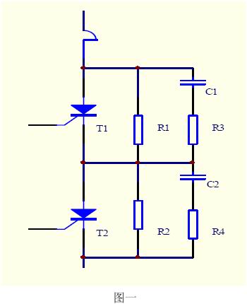 通常使用兩只晶閘管串聯(lián)工作以解決單只晶閘管耐壓不足的問題。這就需要解決晶閘管的工作電壓平均分配問題,包括靜態(tài)均壓與動(dòng)態(tài)均壓。靜態(tài)均壓可采用無感電阻串聯(lián)分壓的方式解決;動(dòng)態(tài)均壓比較復(fù)雜,這是因?yàn)椋涸?shù)dv/dt的差異以及反向恢復(fù)時(shí)間的差異導(dǎo)致開通與關(guān)斷過程中元件承受的電壓分配不均,極端情況可使支路電壓全部加在一只晶閘管上。