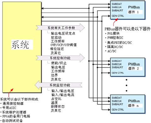 PMBus是屬于系統(tǒng)管理實施論壇(SystemImplementersForum:SM-IF)的一個開放性標(biāo)準(zhǔn),用于定義功率集成電路,所有類型的功率變換電路(例如AC/DC,隔離的DC/DC,非隔離的點負(fù)載(POL)變換器和微處理器供電的變換器等)之間相互通信的一種開放性通信協(xié)議。