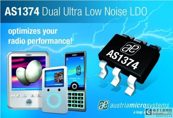奧地利微電子的AS1374工作電壓為2-5.5V,適合便攜式電池供電應(yīng)用。AS1374為匹配低成本、小容量陶瓷電容而優(yōu)化和設(shè)計,每路輸出為200mA負載電流時提供120mV的低電壓降。AS1374可提供1.2V至3.6V的預(yù)編程輸出電壓(編程步長為50mV)。該器件采用先進的架構(gòu),以實現(xiàn)20μVRMS的超低輸出電壓噪聲和優(yōu)于85dB(在1kHz時)的電源抑制比。2個高電平有效使能引腳可以獨立開啟或關(guān)閉每路輸出。