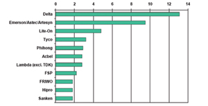 ①有6家臺灣企業(yè),2家日本企業(yè)(含TDK-Lambda),2家美國企業(yè),1家歐洲企業(yè)名列前位;