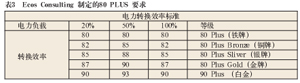 美國能源之星對電源有載、空載工作模式下的工作效率和EcosConsulting制定的80Plus有關(guān)工作效率要求分別如表1、表2和表3所示。