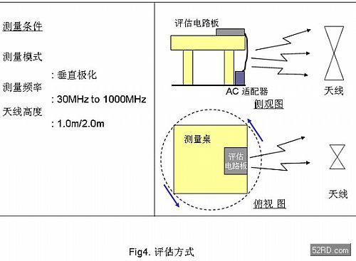 根據(jù)評(píng)估結(jié)果的測(cè)試數(shù)據(jù),噪聲的發(fā)射范圍從幾十MHz到800MHz都有。因此,可以推斷噪聲是從DC/DC轉(zhuǎn)換器和內(nèi)部數(shù)字處理電路傳向AC適配器,通過(guò)電源線發(fā)射出來(lái)的。