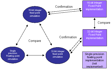 從圖中數(shù)值性能的比較可以看出,16位定點(diǎn)系統(tǒng)有若干個(gè)偽瞬態(tài) (false transient) 與振鈴,而32 位系統(tǒng)則沒有這些現(xiàn)象。32 位單精度浮點(diǎn)與32 位定點(diǎn)的結(jié)果非常相近。