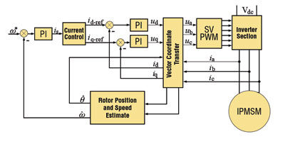 圖2內(nèi)置永磁同步馬達(dá)(IPMSM)向量控制系統(tǒng)框圖