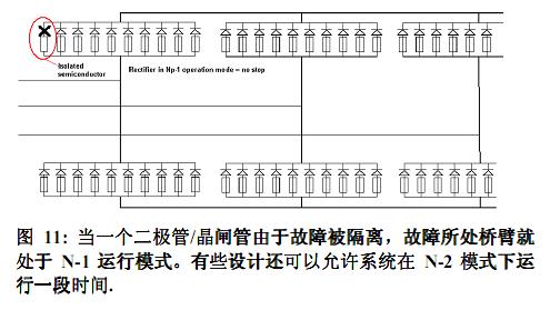 整流器中的半導體和快熔的配合需要仔細考慮。一個考慮周全的熔斷器保護方案基本不存在半導體爆炸的可能。與之相反,不當?shù)南到y(tǒng)設(shè)計將會導致燃弧和起火、損壞整個整流器單元、以及操作人員的人身傷害。按照N-1模式設(shè)計系統(tǒng)可以保護用戶免受生產(chǎn)線部分或全部停頓帶來的損失。因此,在大功率整流應用中,都是基于N-1模式的連續(xù)滿載運行。在某些應用中,客戶甚至要求按N-2-或更多來進行設(shè)計,這些都要加以考慮。如果整流器在N-x模式下運行了過長的時間,而整流器本不是按照N-x模式來設(shè)計的,那么結(jié)果就是故障熔斷器所在橋臂的所有其他熔斷器也受到了傷害。