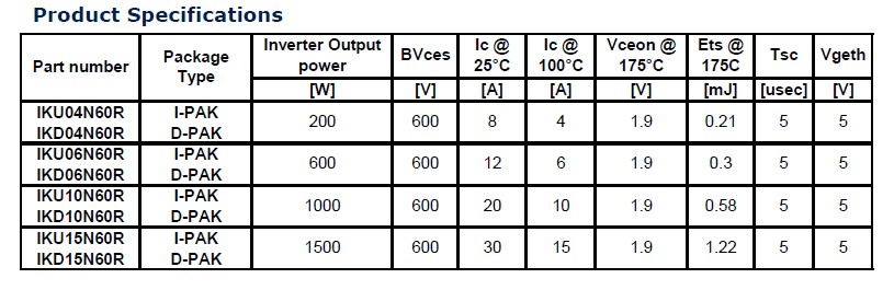 這個是英飛凌IGBT命名的方式,I就是英飛凌。因為英飛凌之前是從西門子獨立出來,所以一些老的產(chǎn)品可能還會沿用這種S開頭的。D是指它的定義,IGBT的類別,K就是這種硬開關(guān)的IGBT,H是軟開關(guān)的IGBT,G就是只有IGBT而沒有二極管的這種IGBT。我們有一款軟開關(guān)的IGBT是專門針對電磁爐的電磁感應(yīng)加熱的應(yīng)用,這一款也是相當(dāng)?shù)牟诲e,有機(jī)會大家可以嘗試一下。另外D是它的封裝形式,D是DPARK的封裝,W是TO240,P是TO220,04是它的一個電流等級,這個電流是在100度的情況下測出來的,N是N溝道,60是它的最大電壓,比如60就是600V,R就是指它的第幾代產(chǎn)品或者是哪一種系列,然后R就是逆向?qū)ㄐ虸GBT中的R2、R3。