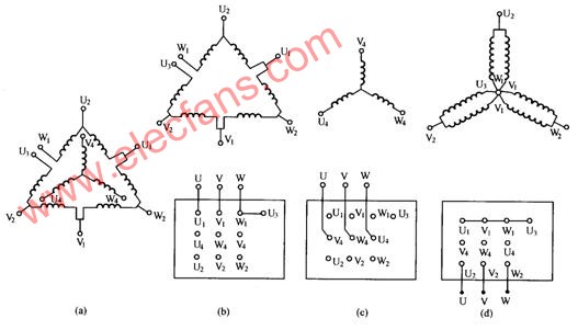 雙速電動機定子繞組的結(jié)構(gòu)及接線方式如圖所示。