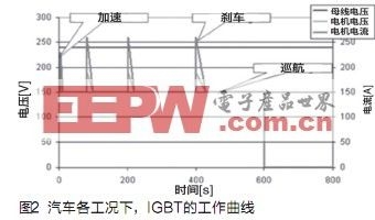 不同于工業(yè)應(yīng)用中電機拖動,混合動力車輛驅(qū)動工況更復(fù)雜,例如對應(yīng)城市工況,需要頻繁切換于加速、減速、巡航各個狀態(tài),因此通過IGBT的電流、電壓并非常量,而是隨車輛工況反復(fù)循環(huán)波動,IGBT模塊需要在電流、電壓循環(huán)沖擊下可靠運行。