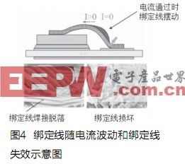 通常,逆變器設(shè)計主要考慮IGBTTjmax(最高結(jié)溫)的限制,但在混合動力車應(yīng)用中,逆變器較少處于恒定工況,加速、巡航、減速都會帶來電流、電壓的改變,由此帶來的ΔTj(結(jié)溫快速變化)將會更大程度影響IGBT的壽命,IGBT導(dǎo)通電流波動時,綁定線也會隨之?dāng)[動,對綁定線和IGBT芯片連接可靠性有較大的影響,反復(fù)的擺動可能導(dǎo)致綁定線壽命的耗盡(EOL,EndofLife),例如綁定線和IGBT芯片焊接脫落、綁定線斷裂等,直接導(dǎo)致IGBT的損壞。