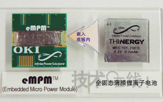 不僅是電容器及IC,就連電池也開始內(nèi)置在印刷底板中。沖Printed Circuits試制出了內(nèi)置薄型全固態(tài)鋰離子充電電池的4層印刷底板,并在2010年6月舉辦的安裝技術國際展會“JPCA Show 2010”上進行了參考展示。“已開始與多家設備廠商討論使用方法,希望最早于2011年啟動業(yè)務”(沖Printed Circuits技術本部商品開發(fā)部擔當部長中澤哲夫)。