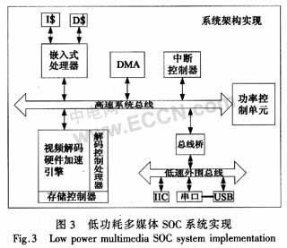 在多媒體SOC中,為了保證服務(wù)質(zhì)量,系統(tǒng)的設(shè)計目標必須是面向最高負載情況。然而在實際運行過程中,視頻解碼器、中央處理器以及一些外設(shè)經(jīng)常處于不活動或者低負載狀態(tài),這無疑白白消耗了一些能量。為解決該問題,EDA公司對Multi-Vt以及Muhi-Vdd等低功耗設(shè)計技術(shù)提供更有力的支持,IP供應(yīng)商對同一IP核也提供了豐富配置以滿足不同應(yīng)用需求,同時Foundry也提供了更豐富的標準單元庫以及工藝。在進行低功耗多媒體SOC設(shè)計的過程中,設(shè)計者所要做的就是充分利用這些技術(shù)優(yōu)勢,盡可能地去開發(fā)可利用的低功耗設(shè)計空間。