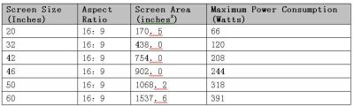 表2:根據(jù)ENERGYSTARV3.0標(biāo)準(zhǔn)計(jì)算各尺寸LCDTV最大允許功耗。