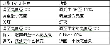 表1為一些DALI的典型調(diào)光命令