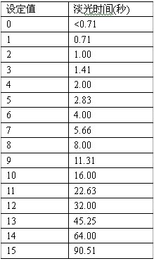 淡光時間是指由燈功率的某一值變化到燈功率的又一新值時所需的時間,利用淡光時間滑動控制條(見主界面圖2)可選擇16個不同的淡光時間值(如表2所示)。