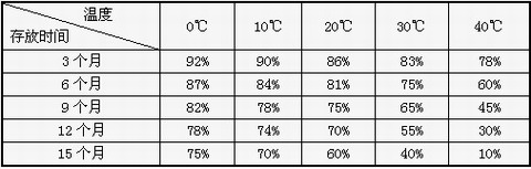 表2:蓄電池存放時間與環(huán)境溫度對容量的影響