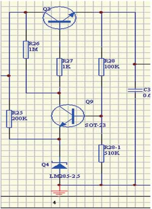 因?yàn)镾-8251芯片輸入電壓范圍是2.5~16V,總線輸入電壓范圍24V,必須先經(jīng)過降壓環(huán)節(jié),這將使變換效率大打折扣。降壓電路靜態(tài)功耗要小于幾十μA量級,否則總線電流很難做到小于3.5mA。我采用MOSFET串聯(lián)降壓方式,基準(zhǔn)源沒有采用穩(wěn)壓二極管,而是使用LM385,做到靜態(tài)電流36μA。圖3為24V降壓到16V電路。