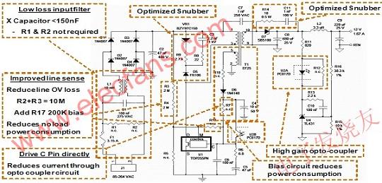 圖1:用PowerIntegrations的TOPSwitch-HX優(yōu)化過的開關(guān)電源。