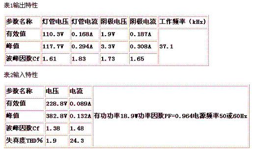 表3能量反饋式電子鎮(zhèn)流器輸出特性