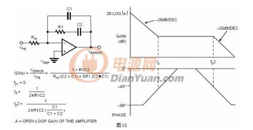這個補償方案有一些很好的特性適合于誤差放大器的補償,它有很高的直流增益和易控的滾降。
