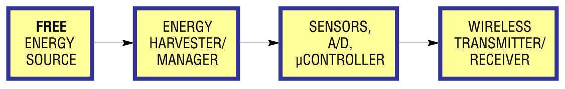 免費能源 能量收集器/管理器 傳感器、A/D、微控制器 無線發(fā)送器 / 接收器